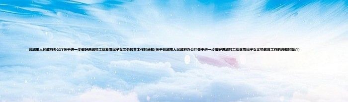 大家好,晋城市人民政府办公厅关于进一步做好进城务工就业农民子女义务教育工作的通知,关于晋城市人民政府办公厅关于进一步做好进城务工就业农民子女义务教育工作的通知的简介很多人还不知道,现在让我们一起来看看吧!