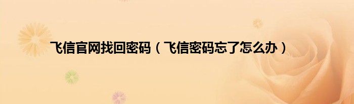 以上就是【飞信官网找回密码,飞信密码忘了怎么办】相关内容。