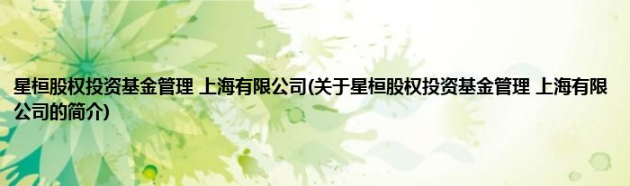 大家好,星桓股权投资基金管理 上海有限公司,关于星桓股权投资基金管理 上海有限公司的简介很多人还不知道,现在让我们一起来看看吧!