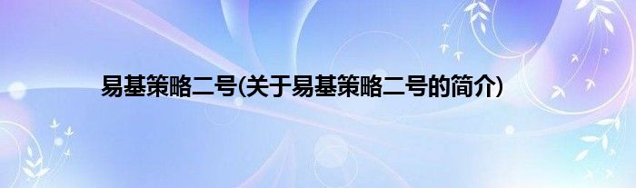 本文关于易基策略二号的简介就讲解完毕,希望对大家有所帮助。
