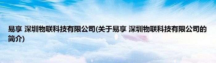本文关于易享 深圳物联科技有限公司的简介就讲解完毕,希望对大家有所帮助。