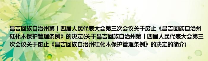 昌吉回族自治州第十四届人民代表大会第三次会议关于废止《昌吉回族自治州硅化木保护管理条例》的决定(关于昌吉回族自治州第十四届人民代表大会第三次会议关于废止《昌吉回族自治州硅化木保护管理条例》的决定的简介)