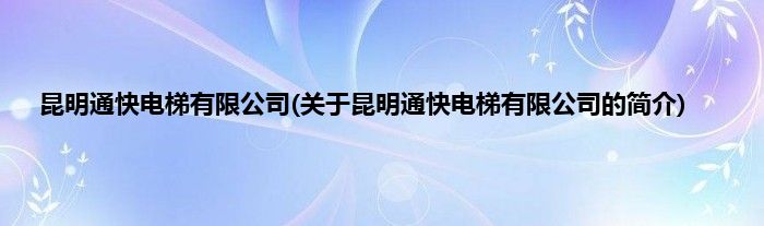 大家好,昆明通快电梯有限公司,关于昆明通快电梯有限公司的简介很多人还不知道,现在让我们一起来看看吧!