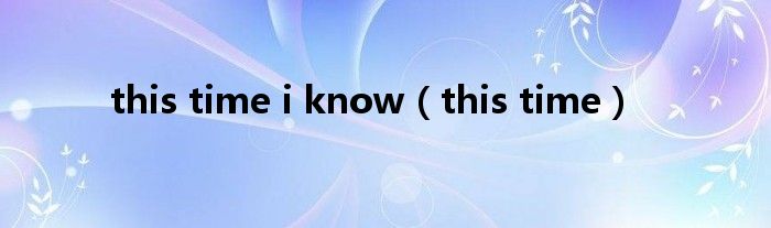 大家好,小问来为大家解答以上问题。this time i know,this time这个很多人还不知道,现在让我们一起来看看吧!