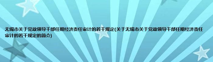 本文关于无锡市关于党政领导干部任期经济责任审计的若干规定的简介就讲解完毕,希望对大家有所帮助。