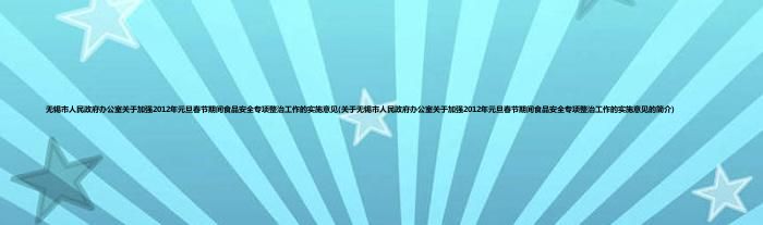 本文关于无锡市人民政府办公室关于加强2012年元旦春节期间食品安全专项整治工作的实施意见的简介就讲解完毕,希望对大家有所帮助。