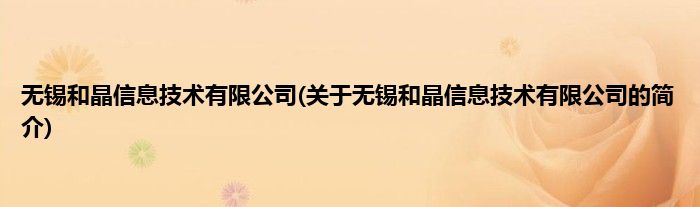 本文关于无锡和晶信息技术有限公司的简介就讲解完毕,希望对大家有所帮助。