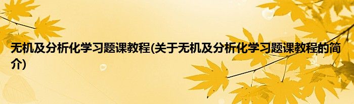 本文关于无机及分析化学习题课教程的简介就讲解完毕,希望对大家有所帮助。