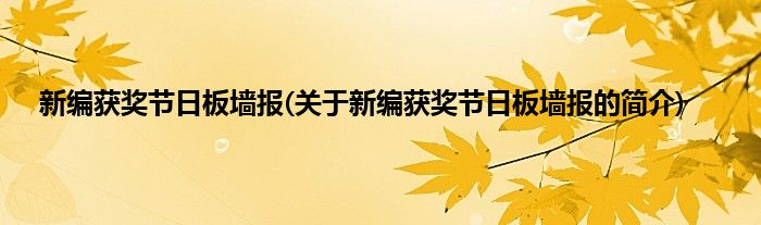 本文关于新编获奖节日板墙报的简介就讲解完毕,希望对大家有所帮助。