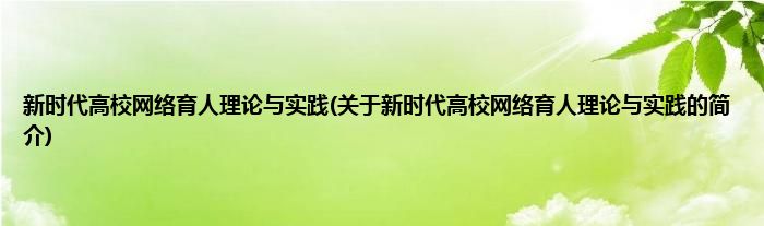 本文关于新时代高校网络育人理论与实践的简介就讲解完毕,希望对大家有所帮助。