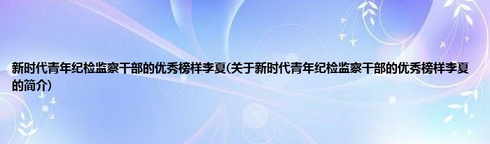 本文关于新时代青年纪检监察干部的优秀榜样李夏的简介就讲解完毕,希望对大家有所帮助。