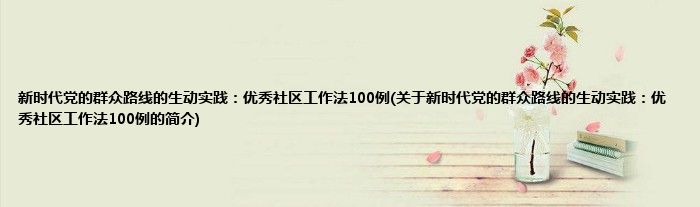 本文关于新时代党的群众路线的生动实践:优秀社区工作法100例的简介就讲解完毕,希望对大家有所帮助。