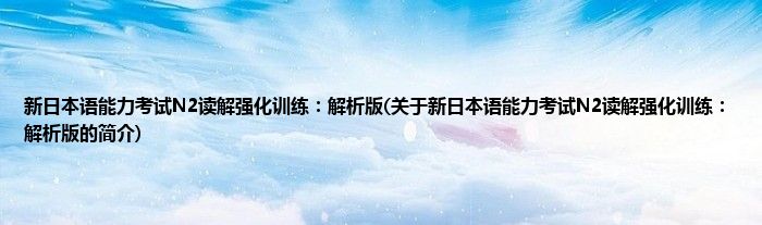 本文关于新日本语能力考试N2读解强化训练:解析版的简介就讲解完毕,希望对大家有所帮助。
