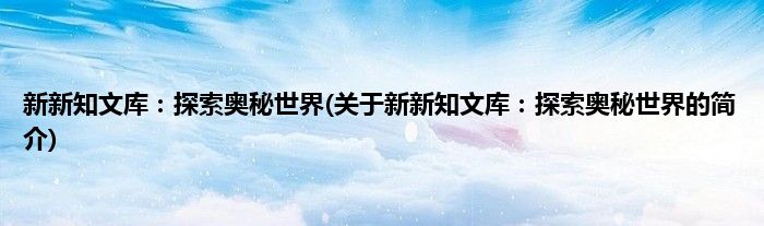 本文关于新新知文库:探索奥秘世界的简介就讲解完毕,希望对大家有所帮助。