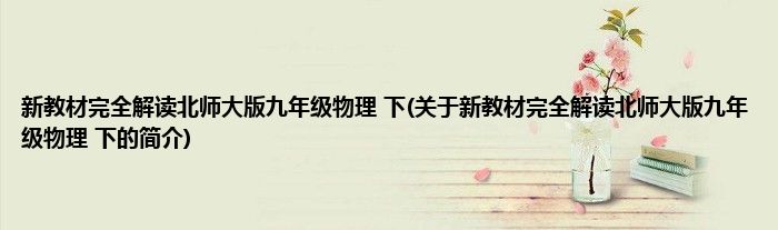 本文关于新教材完全解读北师大版九年级物理 下的简介就讲解完毕,希望对大家有所帮助。