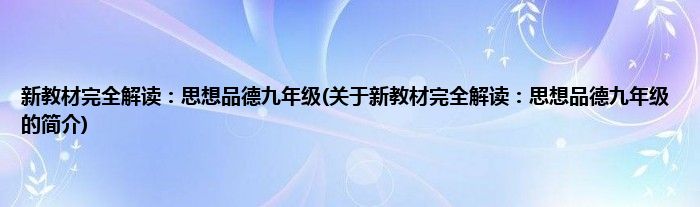 本文关于新教材完全解读:思想品德九年级的简介就讲解完毕,希望对大家有所帮助。