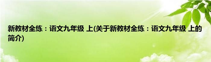 本文关于新教材全练:语文九年级 上的简介就讲解完毕,希望对大家有所帮助。