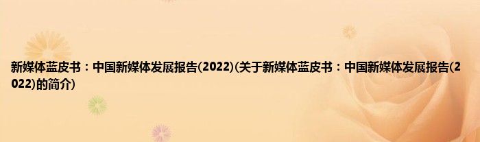 本文关于新媒体蓝皮书:中国新媒体发展报告(2022)的简介就讲解完毕,希望对大家有所帮助。