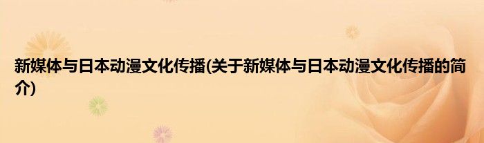本文关于新媒体与日本动漫文化传播的简介就讲解完毕,希望对大家有所帮助。