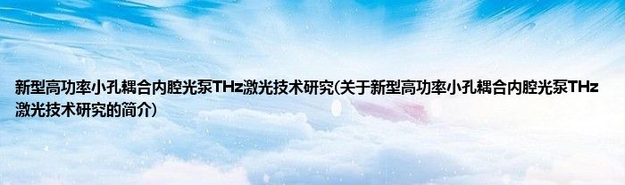 本文关于新型高功率小孔耦合内腔光泵THz激光技术研究的简介就讲解完毕,希望对大家有所帮助。