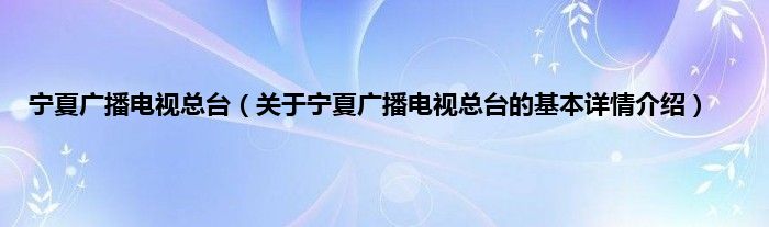 本文关于宁夏广播电视总台的基本详情介绍就讲解完毕,希望对大家有所帮助。