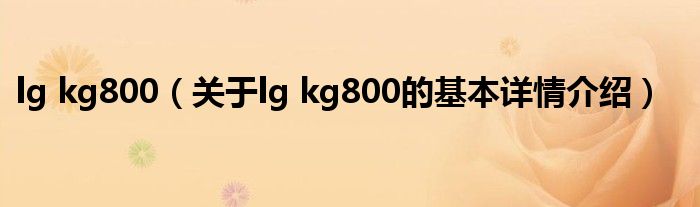 本文关于lg kg800的基本详情介绍就讲解完毕,希望对大家有所帮助。