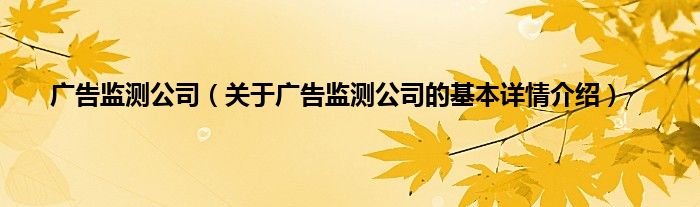 本文关于广告监测公司的基本详情介绍就讲解完毕,希望对大家有所帮助。
