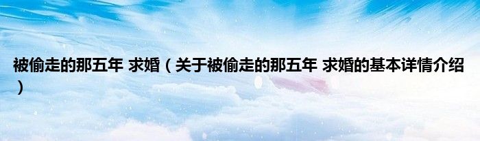 被偷走的那五年 求婚(关于被偷走的那五年 求婚的基本详情介绍)