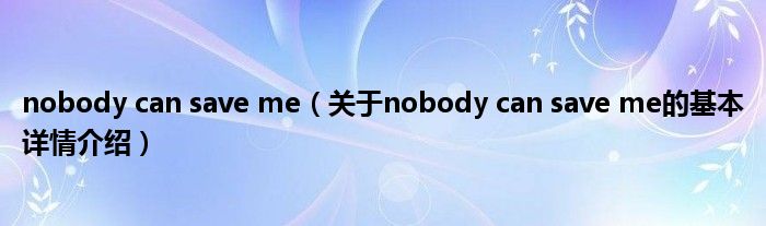 本文关于nobody can save me的基本详情介绍就讲解完毕,希望对大家有所帮助。