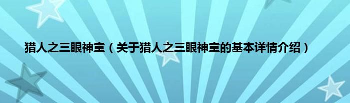 本文关于猎人之三眼神童的基本详情介绍就讲解完毕,希望对大家有所帮助。