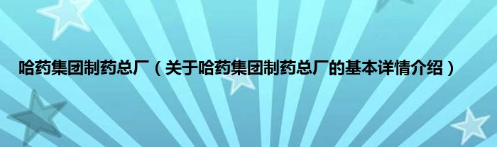 本文关于哈药集团制药总厂的基本详情介绍就讲解完毕,希望对大家有所帮助。