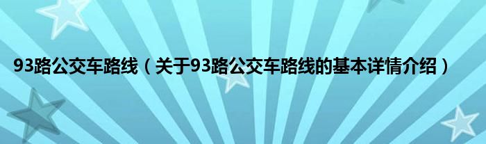 本文关于93路公交车路线的基本详情介绍就讲解完毕,希望对大家有所帮助。