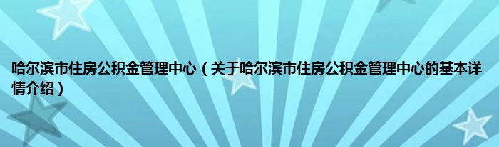 本文关于哈尔滨市住房公积金管理中心的基本详情介绍就讲解完毕,希望对大家有所帮助。
