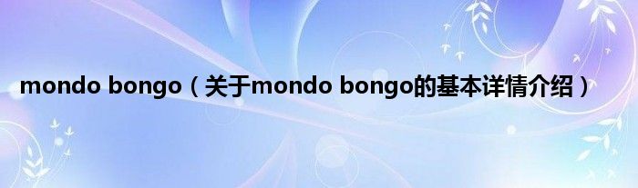 本文关于mondo bongo的基本详情介绍就讲解完毕,希望对大家有所帮助。