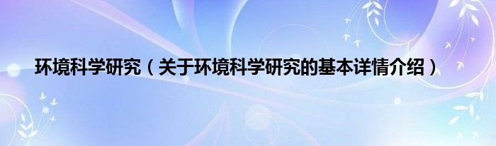 本文关于环境科学研究的基本详情介绍就讲解完毕,希望对大家有所帮助。