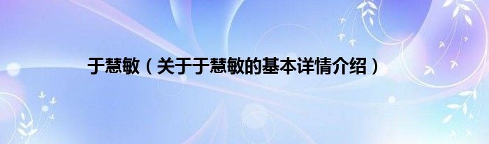 本文关于于慧敏的基本详情介绍就讲解完毕,希望对大家有所帮助。