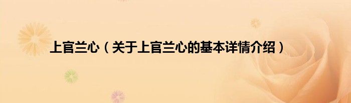 本文关于上官兰心的基本详情介绍就讲解完毕,希望对大家有所帮助。