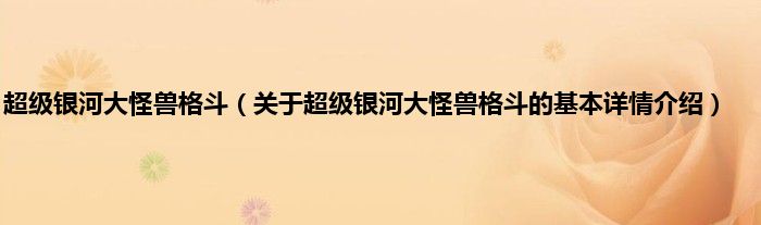 本文关于超级银河大怪兽格斗的基本详情介绍就讲解完毕,希望对大家有所帮助。