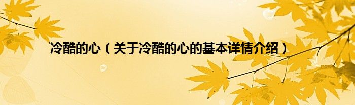 本文关于冷酷的心的基本详情介绍就讲解完毕,希望对大家有所帮助。