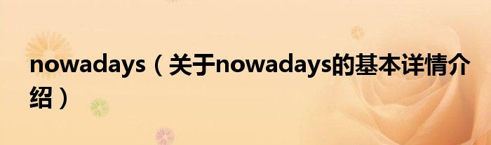 本文关于nowadays的基本详情介绍就讲解完毕,希望对大家有所帮助。
