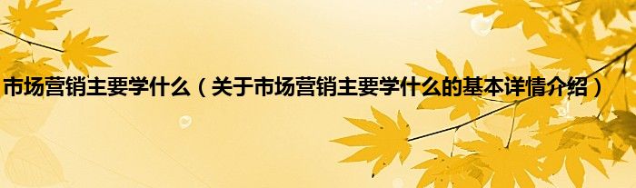 本文关于市场营销主要学什么的基本详情介绍就讲解完毕,希望对大家有所帮助。