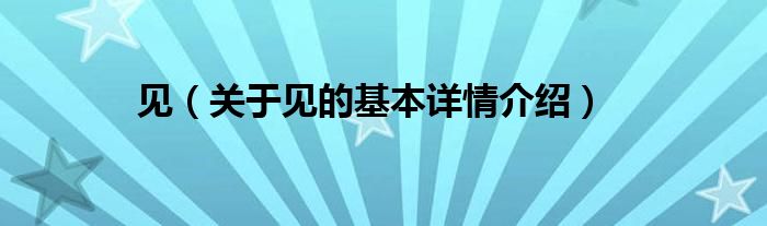 本文关于见的基本详情介绍就讲解完毕,希望对大家有所帮助。
