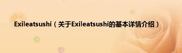 本文关于Exileatsushi的基本详情介绍就讲解完毕,希望对大家有所帮助。