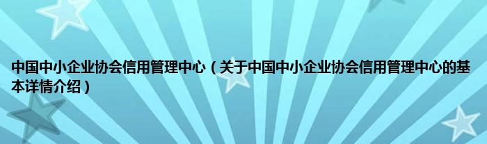 本文关于中国中小企业协会信用管理中心的基本详情介绍就讲解完毕,希望对大家有所帮助。