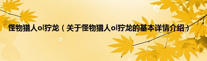 本文关于怪物猎人ol狞龙的基本详情介绍就讲解完毕,希望对大家有所帮助。