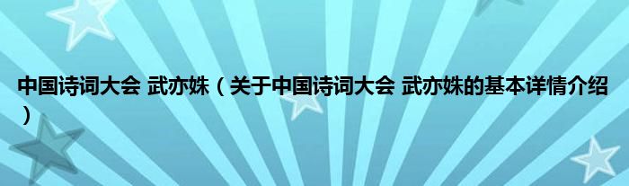 本文关于中国诗词大会 武亦姝的基本详情介绍就讲解完毕,希望对大家有所帮助。