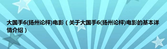 本文关于大国手6(扬州论枰)电影的基本详情介绍就讲解完毕,希望对大家有所帮助。