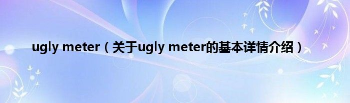 ugly meter(关于ugly meter的基本详情介绍)
