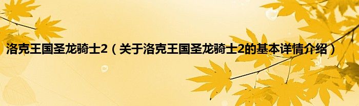本文关于洛克王国圣龙骑士2的基本详情介绍就讲解完毕,希望对大家有所帮助。