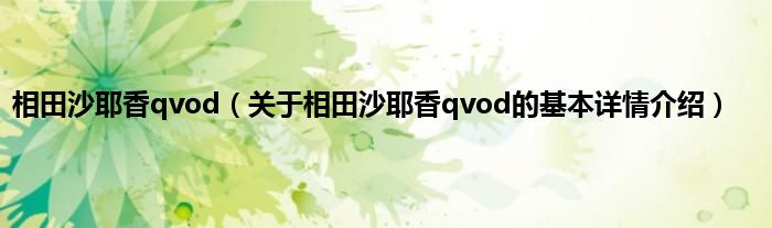 本文关于相田沙耶香qvod的基本详情介绍就讲解完毕,希望对大家有所帮助。